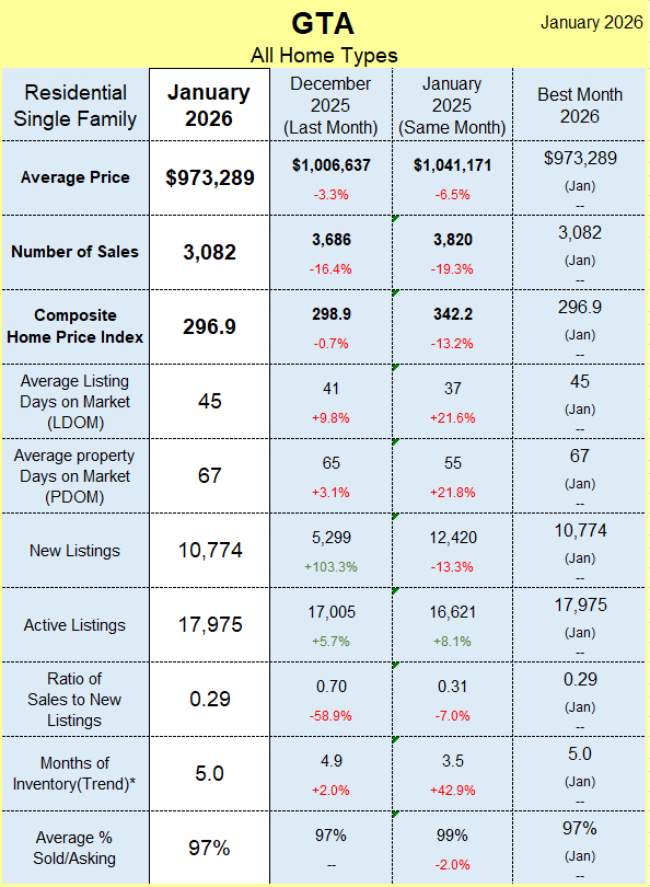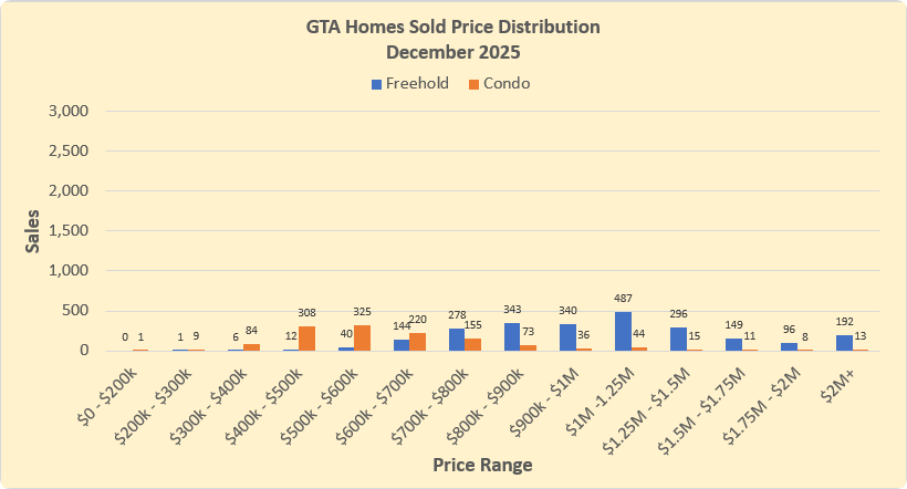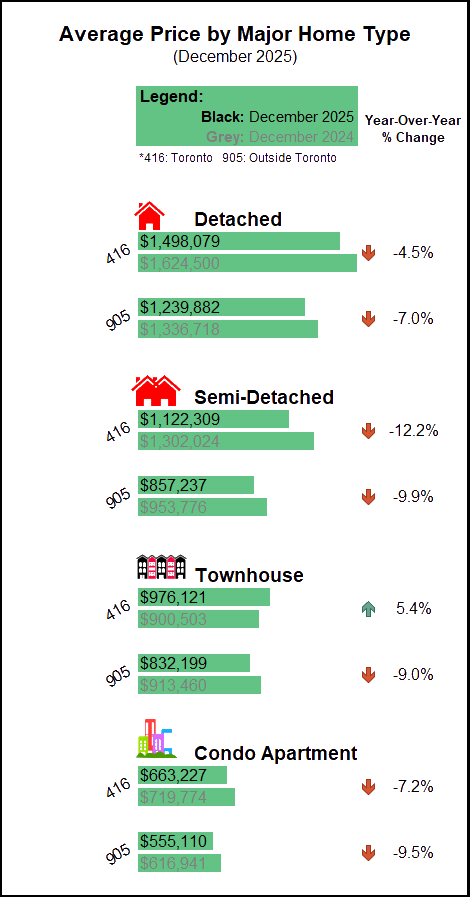 Annual Greater Toronto Area (GTA) home sales declined in 2025 compared to 2024, as economic uncertainty weighed on consumer confidence. Over the same period, listing inventory remained elevated, allowing for selling prices to be negotiated downward, helping improve affordability.
