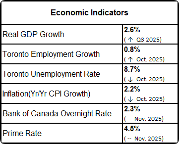 “There are many GTA households who want to take advantage of lower borrowing costs and more favourable selling prices. What they need most is confidence in their long-term employment outlook. Fortunately, we saw encouraging news on jobs and the broader economy in November. If this positive momentum continues, consumer confidence will strengthen, and more people will be in a position to consider purchasing a home in 2026,” said TRREB President Elechia Barry-Sproule.