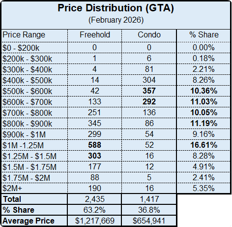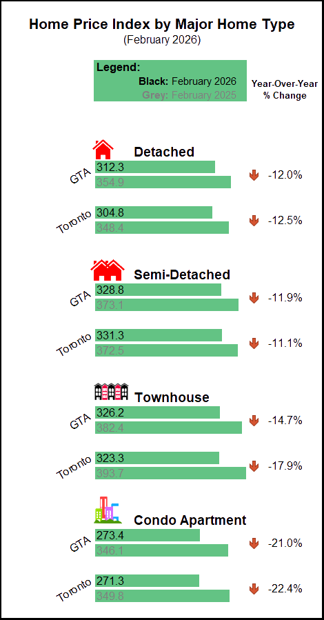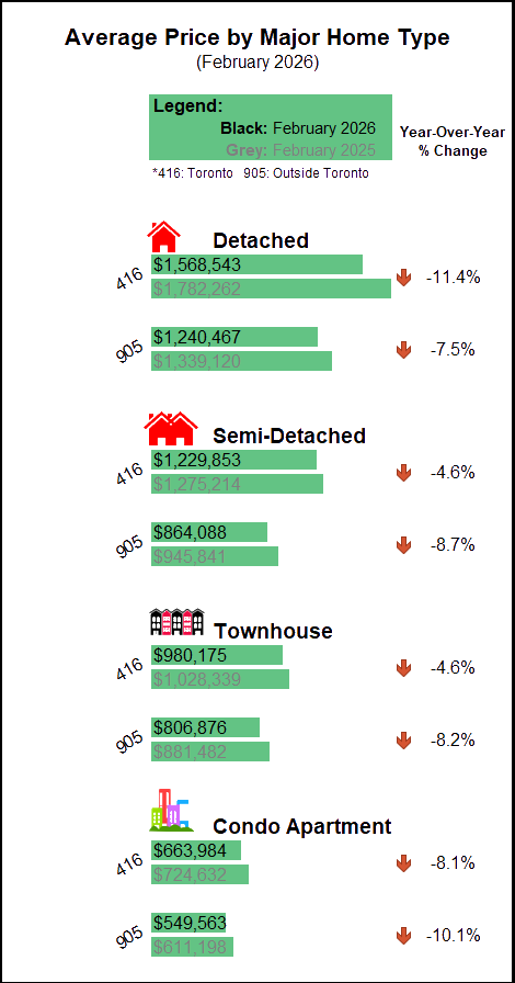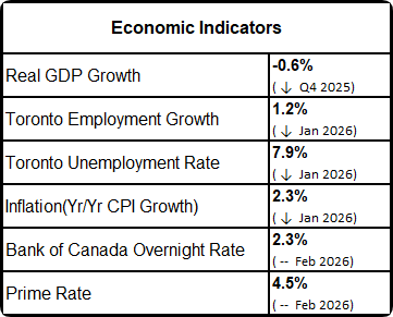 Greater Toronto Area (GTA) resale housing market conditions tightened in February 2026 compared to February 2025. While sales were down year-over-year, new listings declined by a greater annual rate. The dip in new listings is in line with recent polling results from Ipsos which show listing intentions are down for 2026.