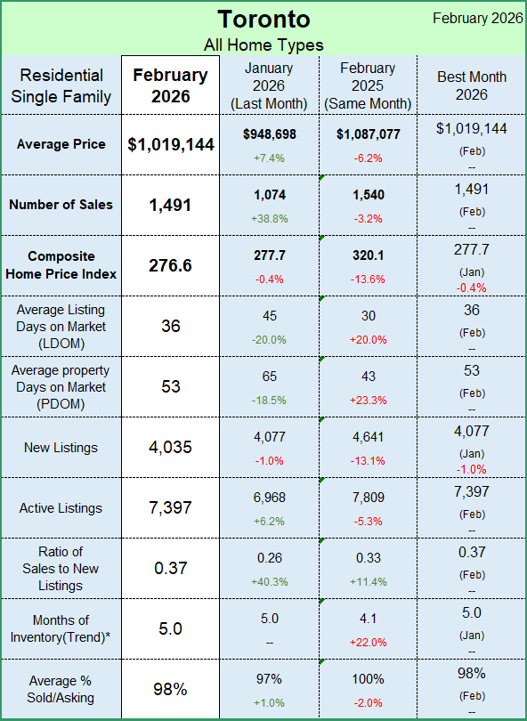 On a month-over-month seasonally adjusted basis both the MLS® HPI Composite and the average selling price were down compared to January 2026 figures.